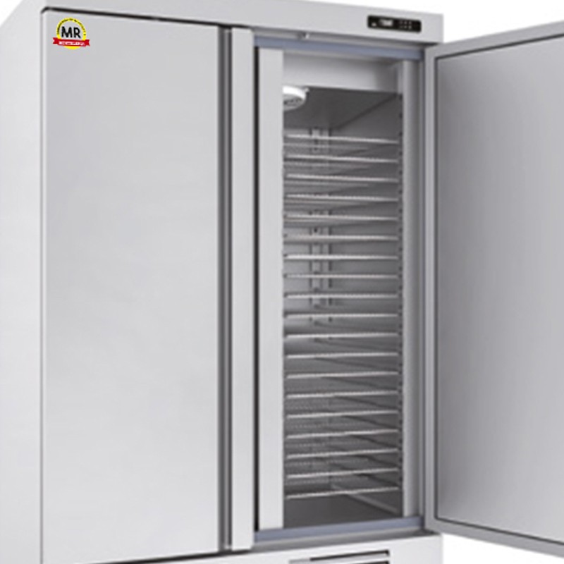 Armario snack congelación, modelo con capacidad para bandejas/parrillas pasteleras de 60x40. Interior y exterior fabricado en acero inox AISI-304, excepto respaldo y fondo. Cuenta con aristas curvas y fondo embutido.