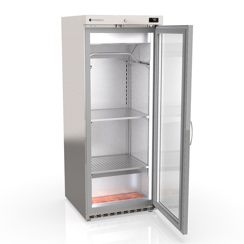 Armario expositor maduración de carne DAV-400, con exterior en acero plastificado negro (inox opcional), excepto el respaldo.