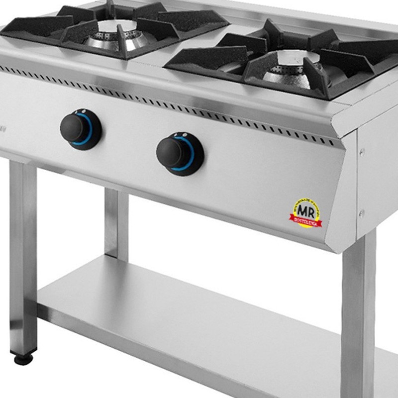 Cocina 2 fuegos a gas, ideal para un uso profesional en cocinas industriales y hostelería. Estructura robusta en acero inoxidable, que garantiza gran durabilidad y fácil limpieza.
