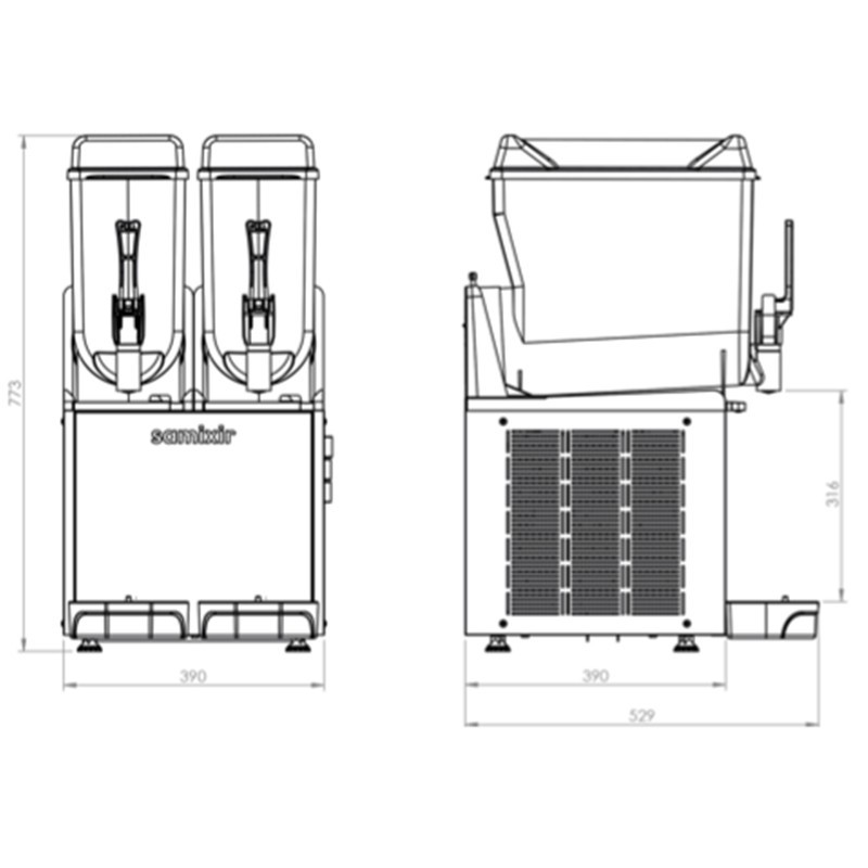 Granizadora Slush24, granizadora de 24 litros de capacidad Samixir, disponible en color negro y amarillo.
