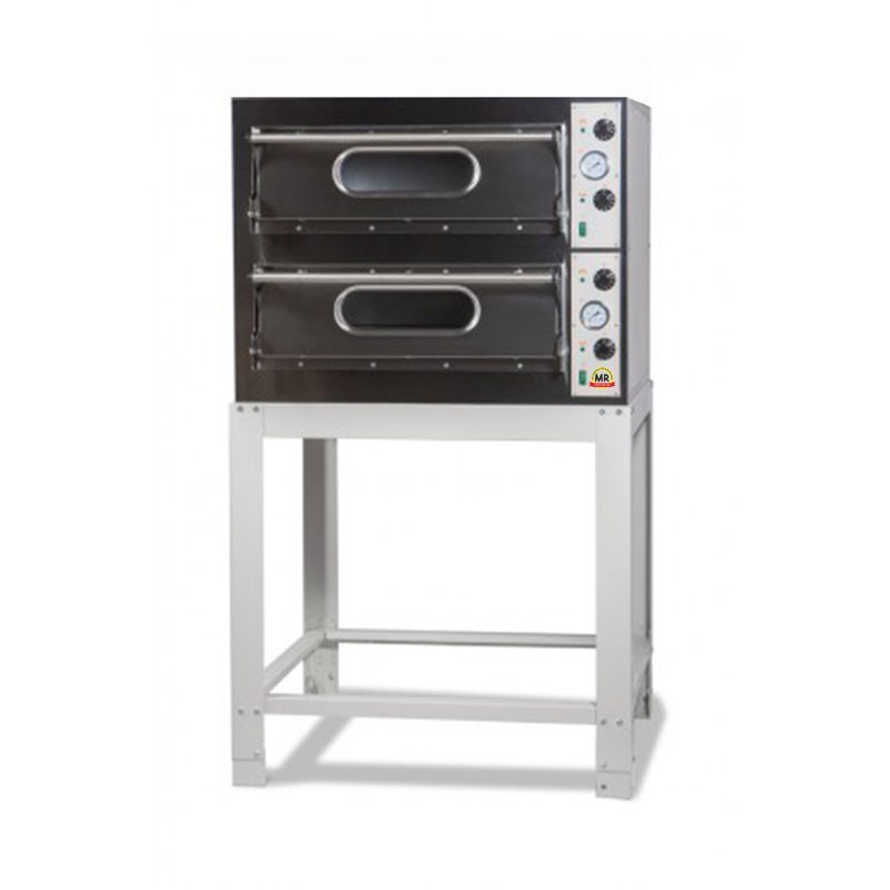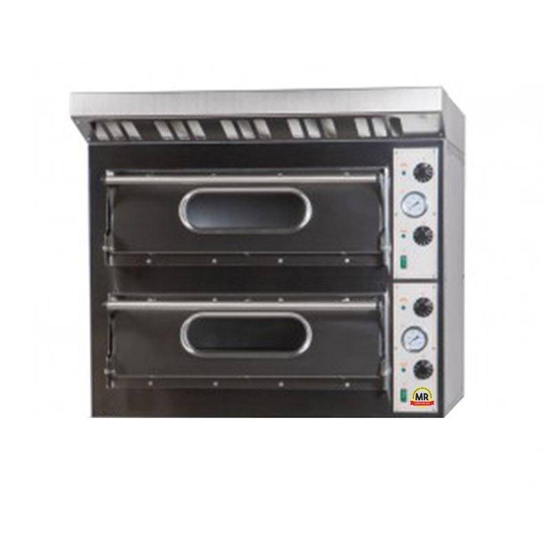 Horno de pizza start 4 + 4, con este horno conseguirás una perfecta cocción de pizzas de 33 cm. Está fabricado totalmente en acero inoxidable y chapa prelacada con aislamento de lana de roca.