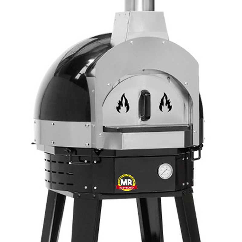 Horno de pizza de leña, con base de piedra diámetro 700 mm sin rotación. Diseño moderno y elegante fabricado en acero inoxidable.