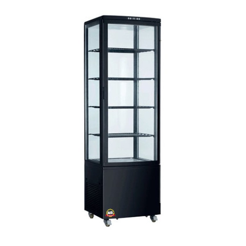 Vitrina vertical RT-235, de refrigeración ventilada ideal para la exposición de alimentos con los 4 laterales de cristal que proporcionan mayor visibilidad de los productos en el interior.